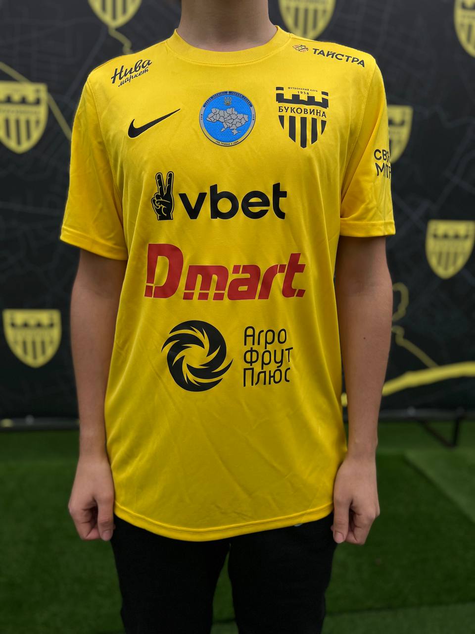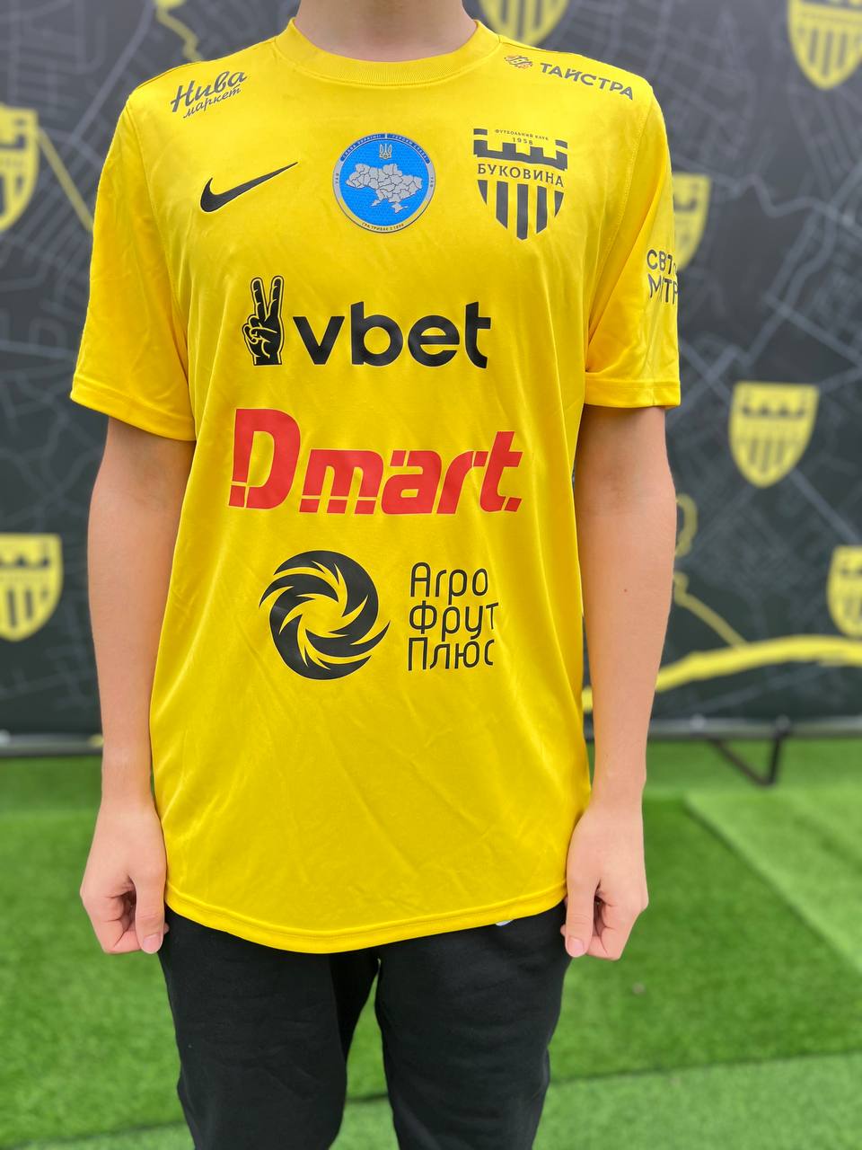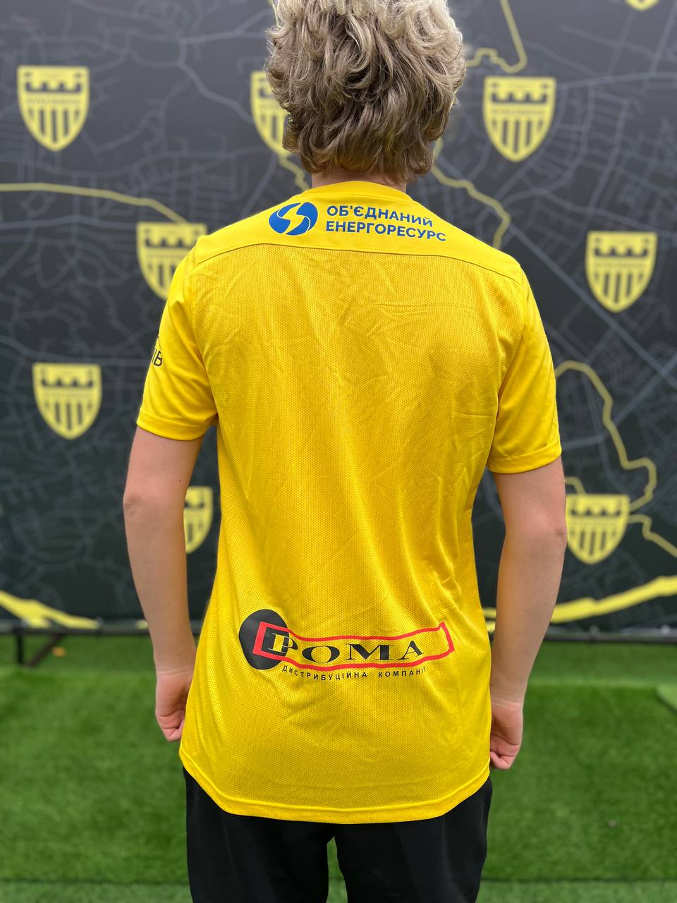 Ігрова футболка жовта та чорна із всіма спонсорами , як у футболістів.
